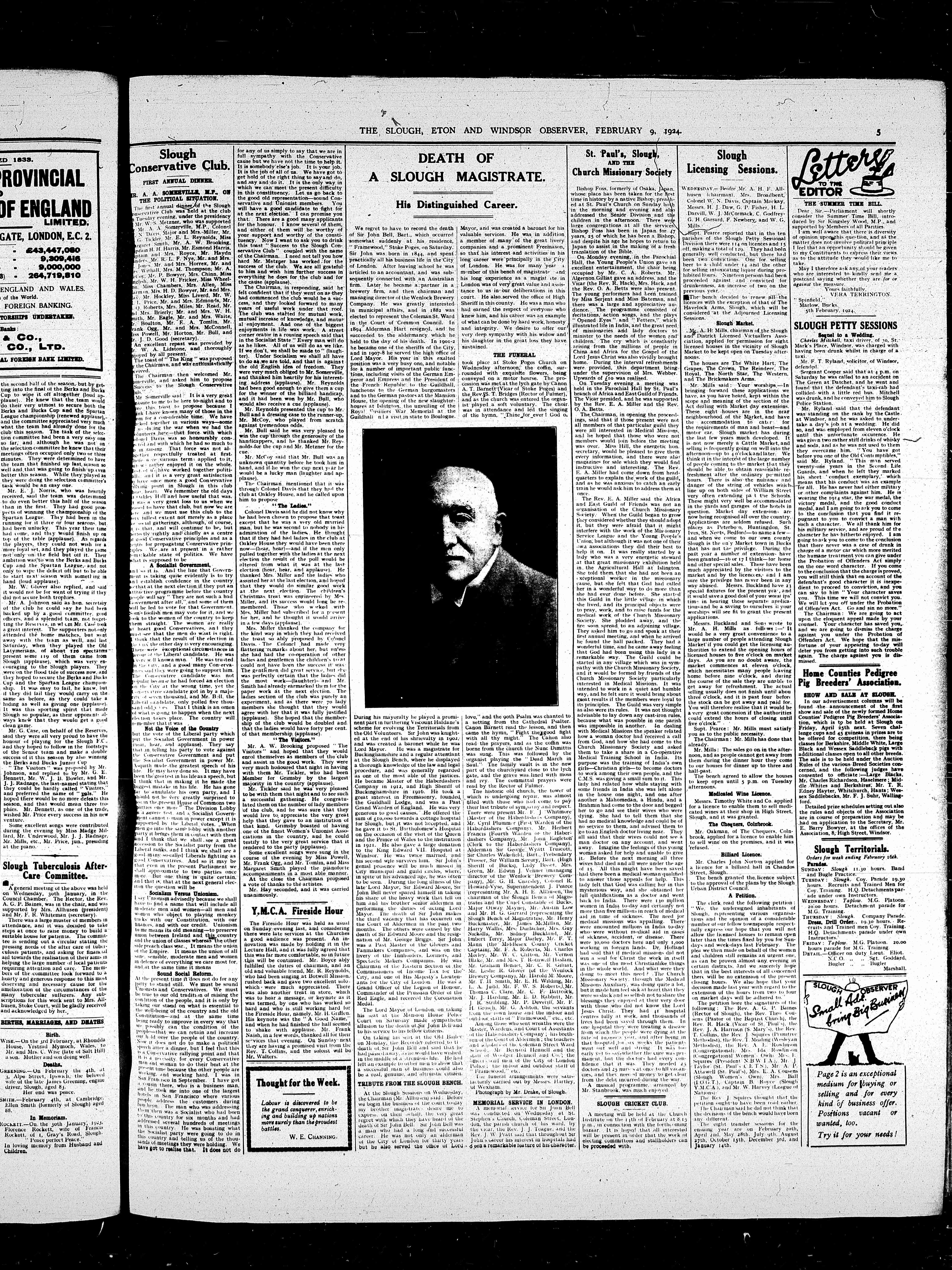 Slough, Eton & Windsor Observer, 09/02/1924, page 5. |